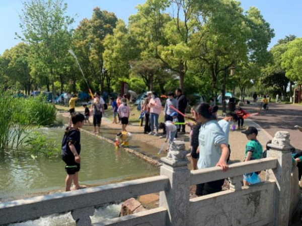 園內(nèi)游人如織,有的在遛娃、戲水、拍照,有的在群藝館觀摩字畫、參觀非遺展覽,有的在月亮廣場欣賞惠民演出,還有人在星空下拉起幕布觀看電影……優(yōu)美宜人的自然景色與豐富多彩的文化景觀為市民帶來了絕佳的出游體驗(yàn)。