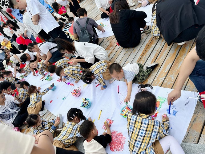 秋風(fēng)起,月漸圓;紅旗飄揚,愛國情深。在老師的帶領(lǐng)下,孩子們揮舞著紅旗歌唱著對祖國媽媽的愛;在爸爸媽媽的陪同下,孩子們用充滿想象的畫筆在長卷上繪出五彩畫卷,并出色地完成了自己的花燈。此次活動既讓孩子們在快樂節(jié)日氛圍里感受中國傳統(tǒng)文化的魅力,又鍛煉了孩子們的動手能力,增進了親子間的感情。