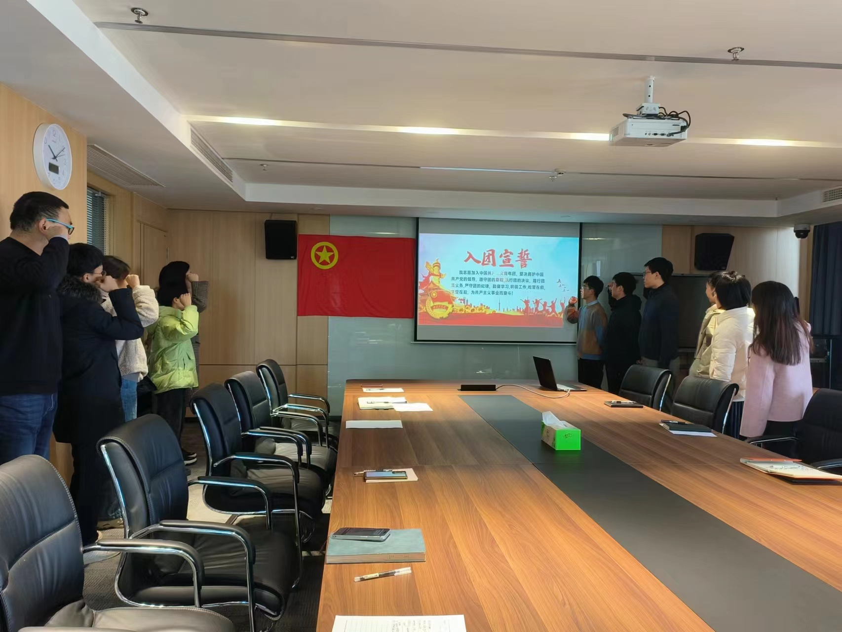 青年興則國家興,青年強則國家強。本次主題團課把深入學習習近平總書記重要講話精神與青年精神素養(yǎng)提升結合起來,帶領青年團員深入理解總書記重要講話精神的豐富內涵和實踐要求。隨后,全體共青團員重溫入團儀式,面對鮮紅的團旗莊重宣誓,充分表達愛黨愛國的信念與決心。